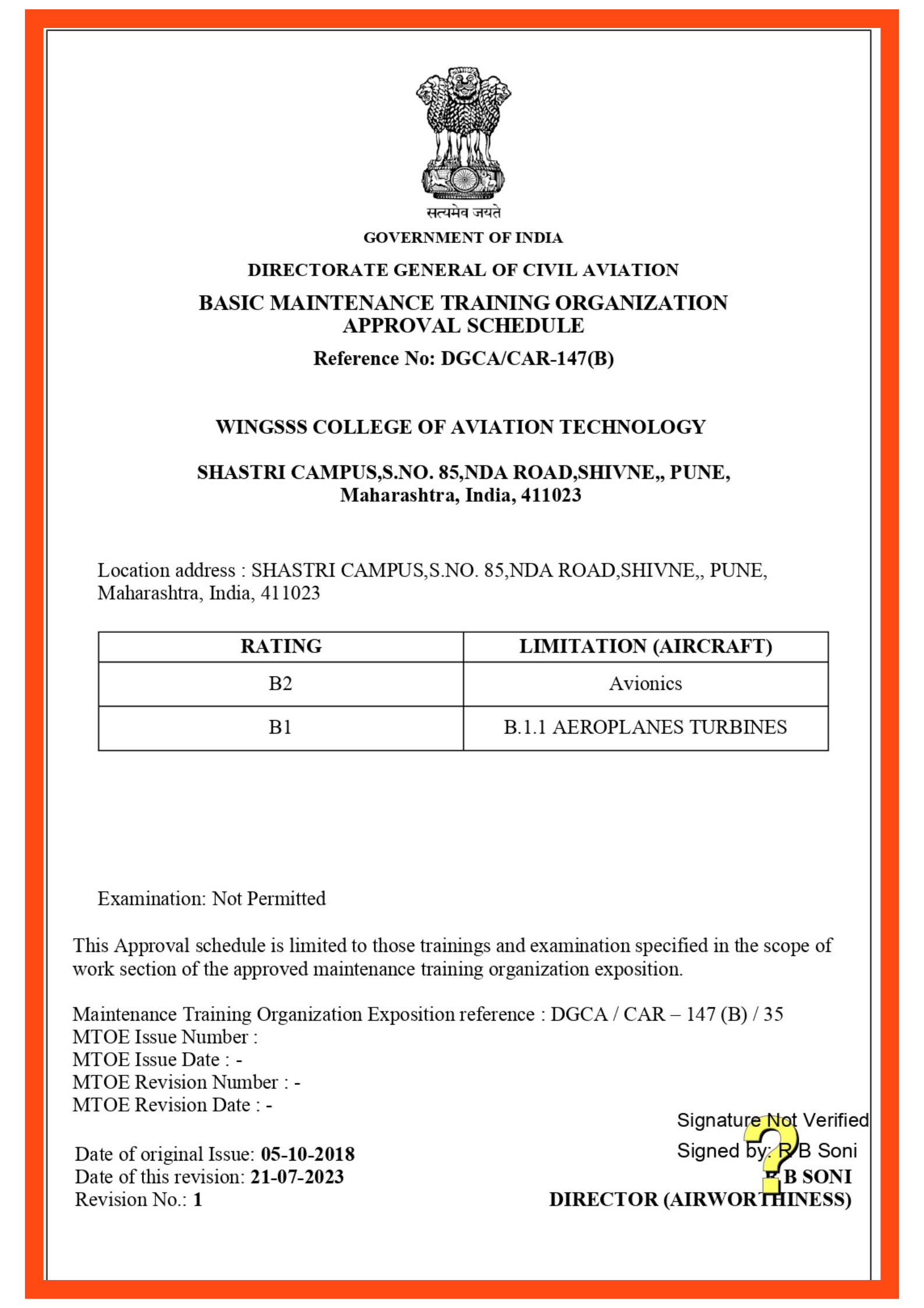 At Wingsss College of Aviation Technology, we are dedicated to providing high-quality education and training in the field of aviation. Our institution is approved by the Directorate General of Civil Aviation (DGCA), ensuring that our programs meet the stringent standards set by regulatory authorities.
